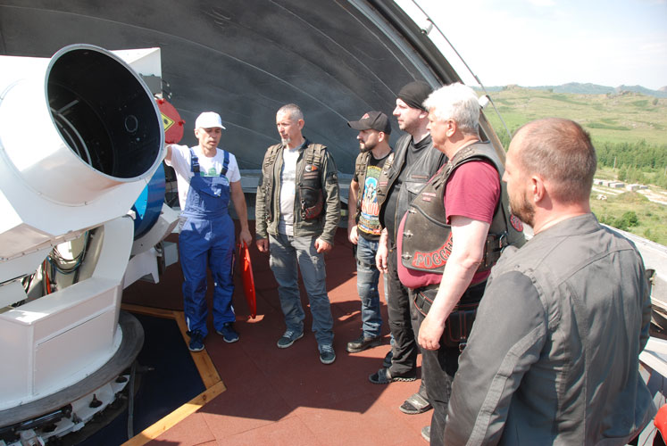 Представители всероссийского мотоклуба «Ночные волки» в ходе мотопробега, посвященного 60-летию первого полёта в космос Ю.А. Гагарина, посетили «Алтайский оптико-лазерный центр имени Г.С. Титова» («ОЛЦ им. Г.С. Титова», входит в НПК «СПП» Госкорпорации «Роскосмос»).